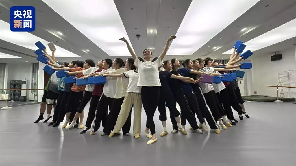 “从慢动作分解到合乐练习,每个人都在地面标记站位点,哪怕练到汗湿舞服也没人抱怨。”朱之怡表示,舞蹈从4月份开始排练,进入暑假,同学们每天训练超过8小时。“有次大家为了一个队形熬到很晚,有人累得胳膊抽筋还在坚持,最后排出效果时所有人都笑着鼓掌。”