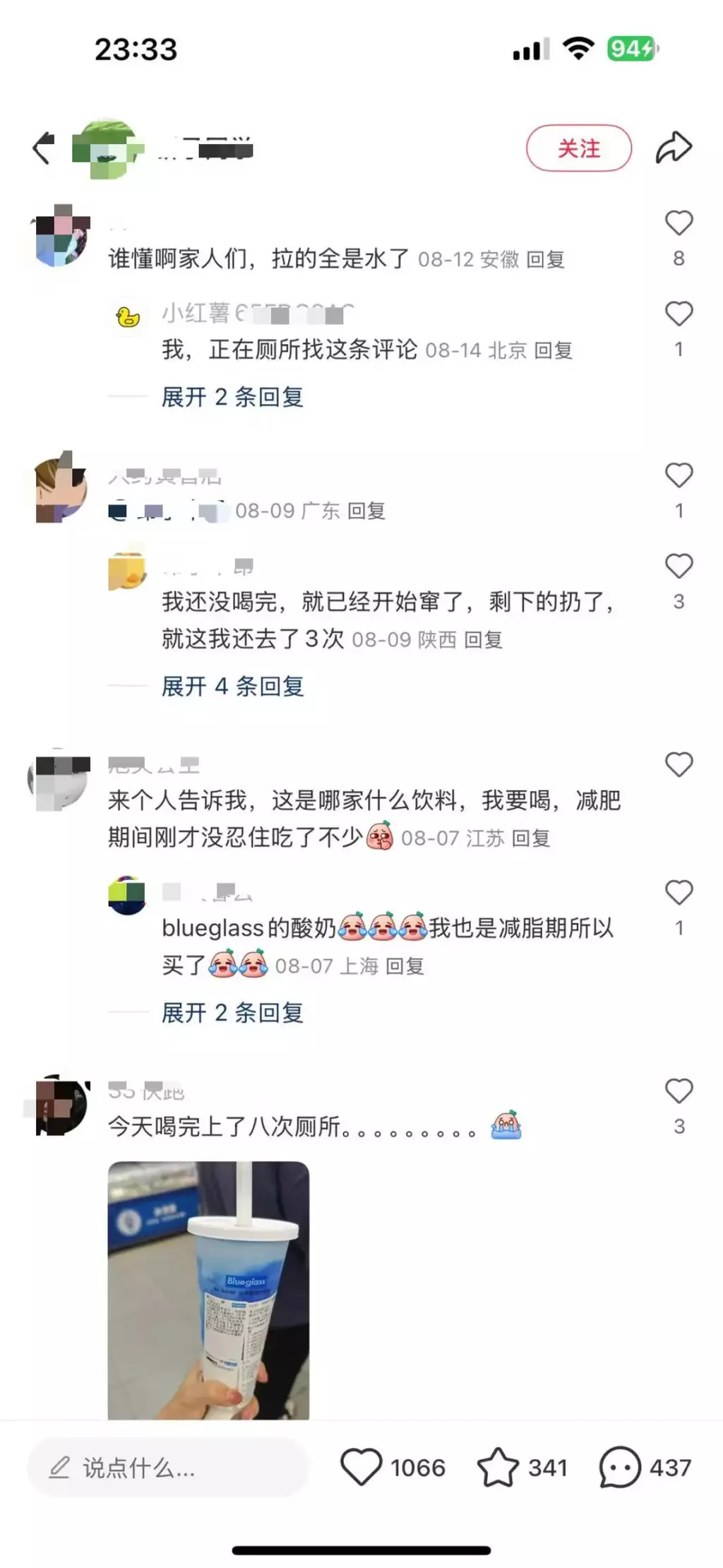也有网友发帖称,自己正在减肥中,原本打算将该酸奶作为代餐,没想到进了急诊,成了急性肠炎。评论区里,有不少网友表示,自己正坐在马桶上进行回复。