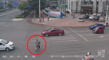 2020年,广西柳州,一位老人骑自行车行驶至事发路口时,交通信号灯显示为红灯,自行车未按照红灯信号等候通行,强行穿过路口,撞上一辆小轿车。根据《中华人民共和国道路交通安全法》相关规定,城中大队依法认定老人在此次事故中负全部责任。