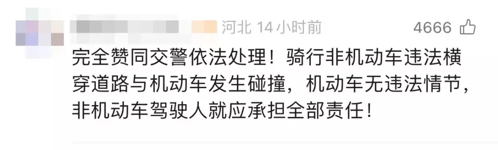 不料女子家属到来后,不服判决还质疑,“以前驾驶员多少都要带点责任的”。交警回应称,“人人都这样想,驾驶员还怎么开车?自行车横过机动车道,必须下车推行,有违法行为的一方,就要承担事故的全部责任。”