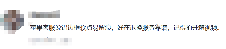 对此,苹果客服解释称,iPhone17系列边框材质为铝金属,相较于钛金属偏轻软一些,碰一下可能会出现凹陷。若用户开箱出现划痕等问题,建议用户拍摄开箱视频,苹果支持官方渠道14天之内退换货。品控这块苹果一直坚持高标准,开箱出现瑕疵是极少数情况,苹果会做好售后。