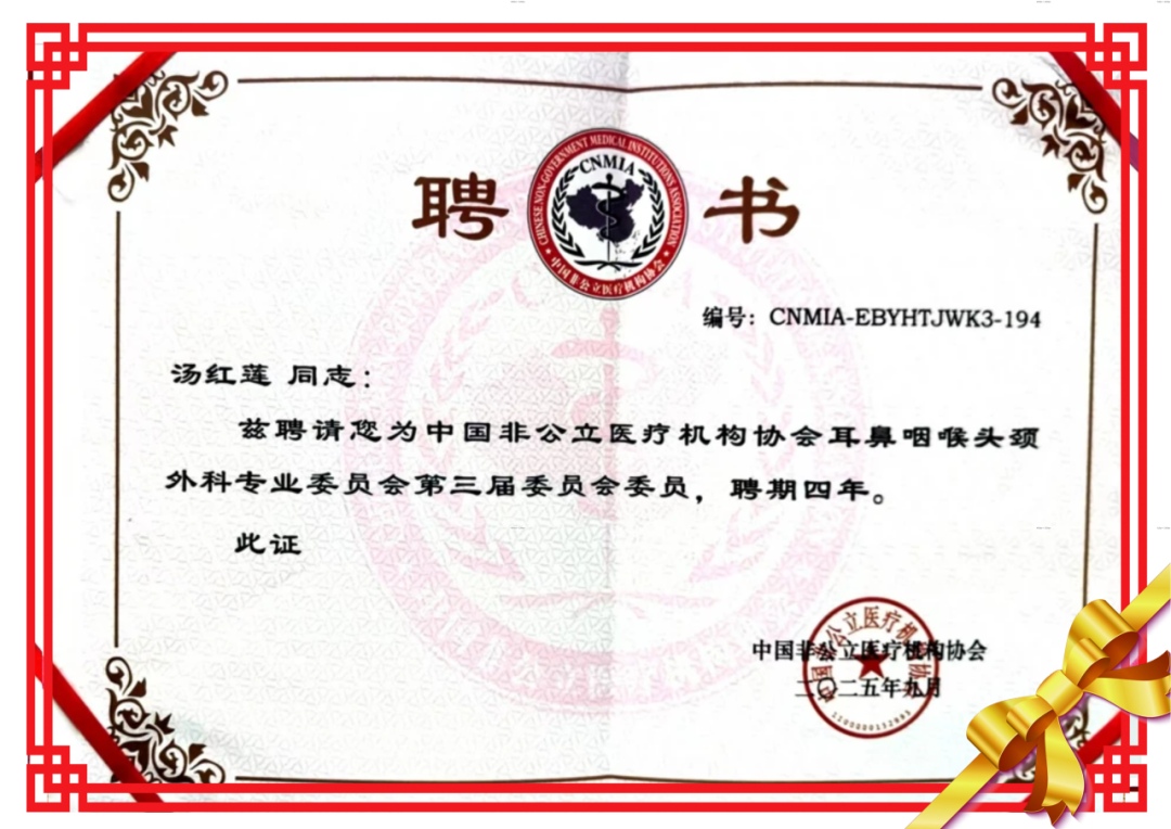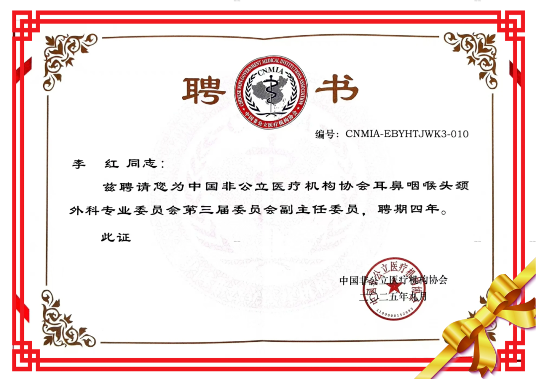 2025年9月20日-21日,“中国非公立医疗机构协会耳鼻咽喉头颈外科专业委员会2025年学术年会”圆满召开。重庆西区医院耳鼻咽喉头颈外科主任李红教授凭借其深厚的学术造诣和行业影响力,荣誉当选为协会第三届委员会副主任委员。