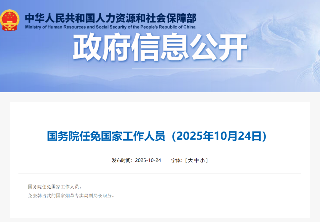 据人社部网站10月24日消息,国务院任免国家工作人员。