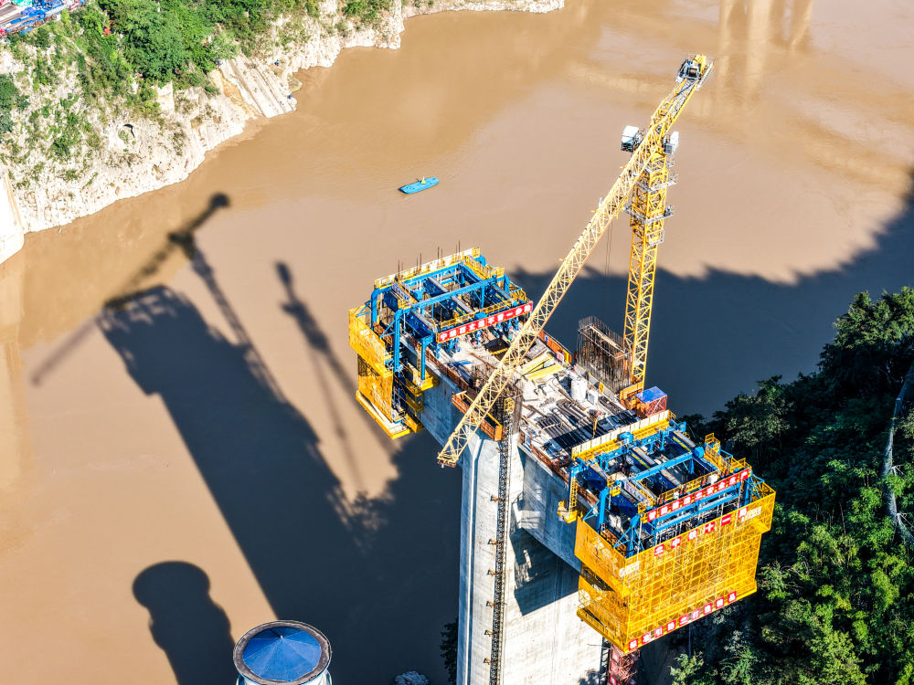 西渝高铁嘉陵江特大桥位于重庆市北碚区,全长874.1米,横跨嘉陵江,是西渝高铁康渝段重庆枢纽全线重难点、控制性工程。在智慧悬臂造桥机的助力下,西渝高铁嘉陵江特大桥悬臂施工工期预计缩短20%,现场作业人员减少20%,人工成本显著降低。截至目前,西渝高铁嘉陵江特大桥14号主墩已完成造桥机安装,15号主墩已完成4号节段浇筑。 新华社记者 唐奕 摄