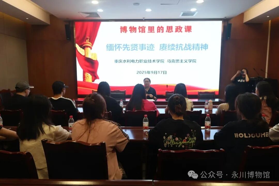 为让红色英雄故事融入大思政课堂,让大学生们在感悟历史中坚定理想信念,传承红色基因,争做担当民族复兴大任的时代新人。9月17日,“九·一八”事变纪念日来临之际,永川博物馆与重庆水利电力职业技术学院马克思主义学院馆校互动,开展了一场别开生面的以永川籍红色英雄历史人物故事讲述为主的思政课,共同推动大思政课进高校进校园。这也是重庆水利电力职业技术学院马克思主义学院纪念中国人民抗日战争暨世界反法西斯战争胜利80周年的重要思政系列课程之一。