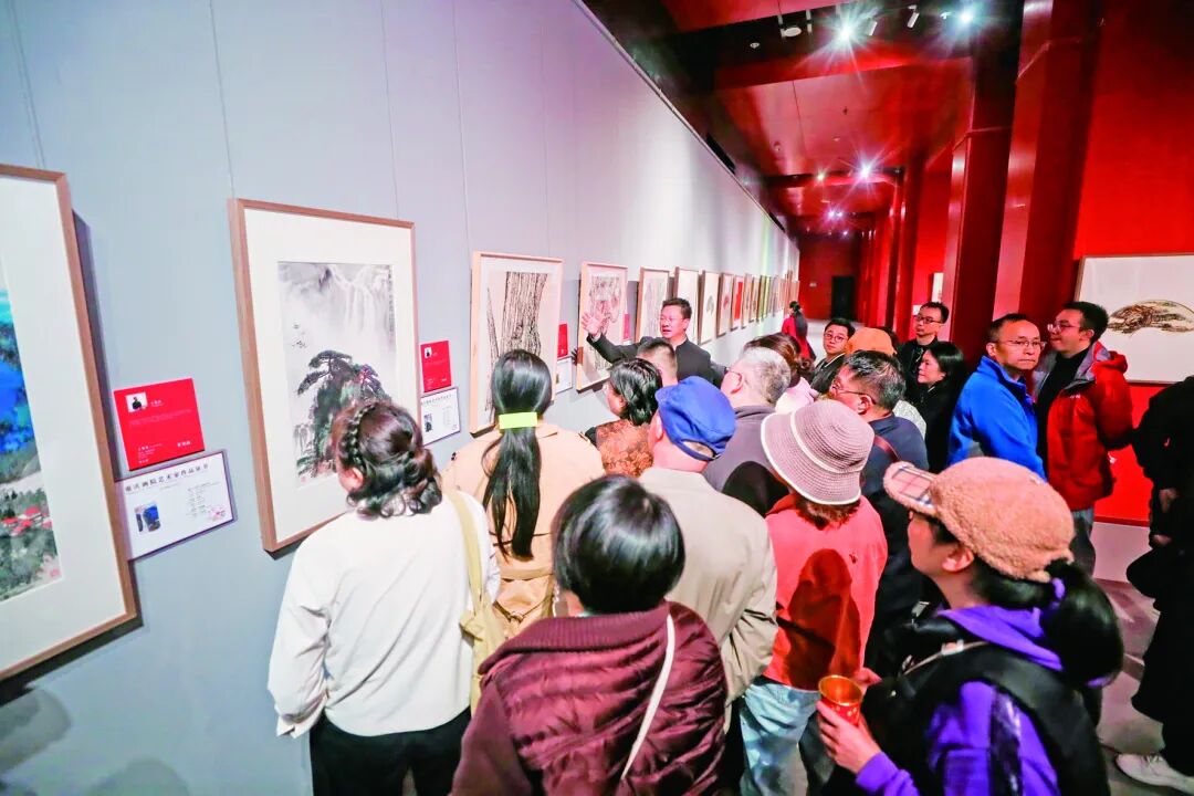 11月8日,作为第十四届中国艺术节重要组成部分的“美术馆之夜”活动在重庆美术馆举行,在静谧而雅致的展厅内,重庆美术馆馆长王发荣带领观众进行了一场深度书画品鉴之旅,他以通俗易懂的语言解析了传统山水画中的“可游可居”、人物画中的“传神写照”,以及书法艺术中的“气韵生动”,使观众得以窥见经典作品深层的艺术价值与文化内涵。为打破艺术创作的神秘感,活动还特别设置了书画互动体验区。观众不仅了解了画家如何将胸中丘壑转化为纸上烟云,更有机会在艺术家的指导下亲手执笔尝试,体验水墨交融的趣味。