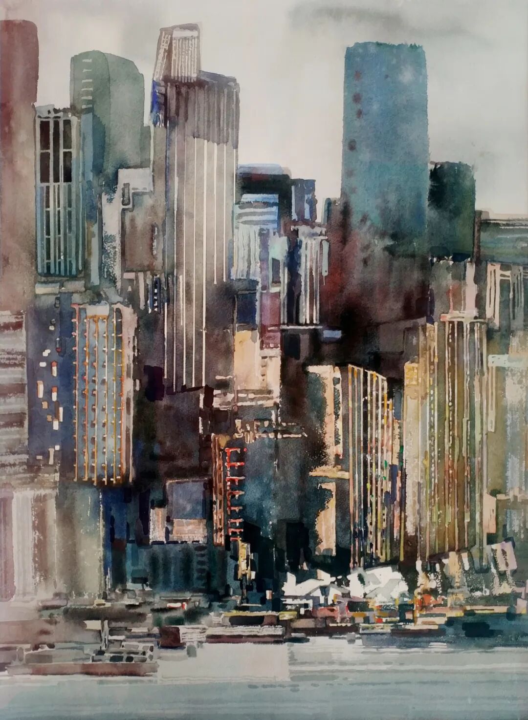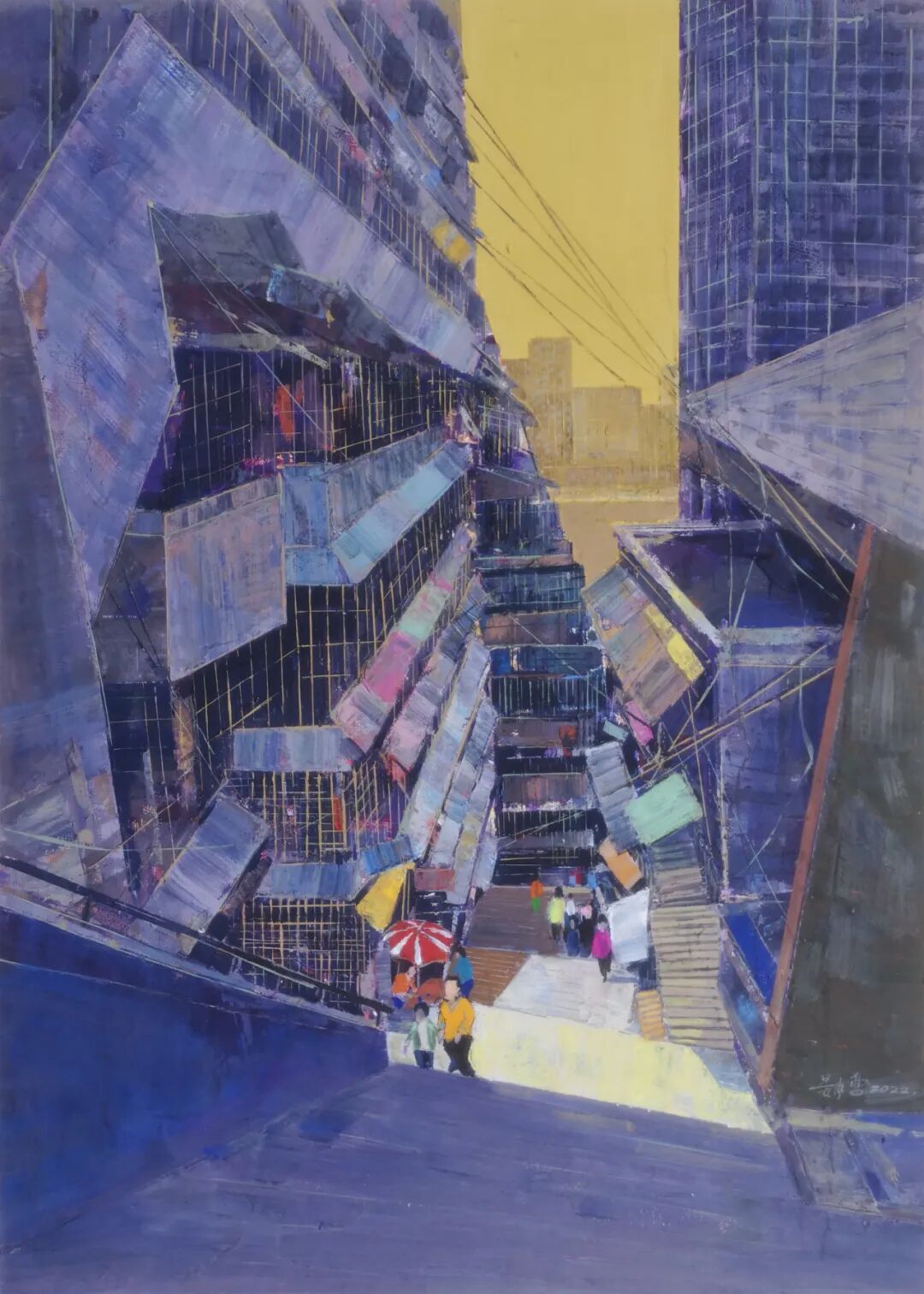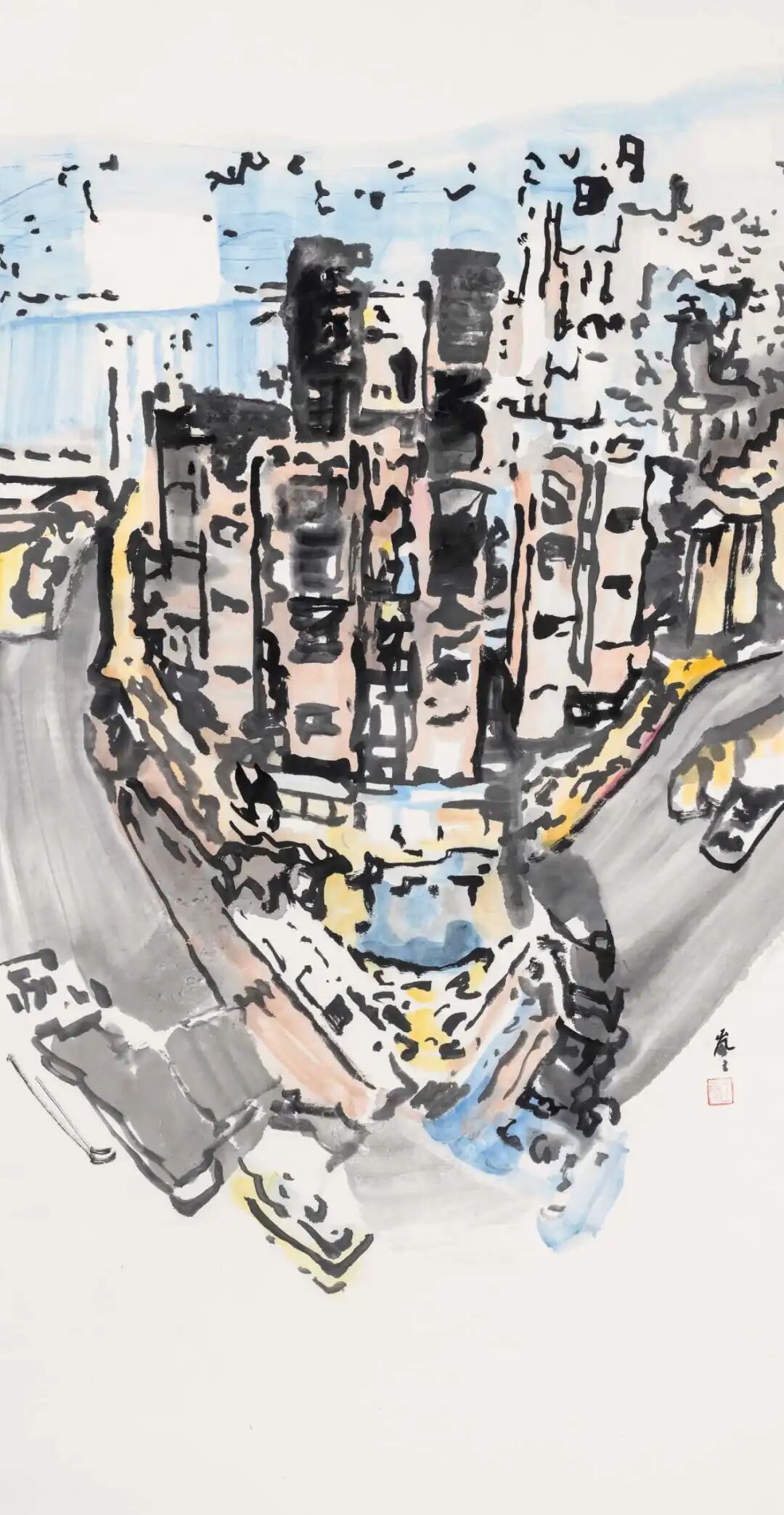祝殿超、杨靓雅《山城的一天》水彩、粉画