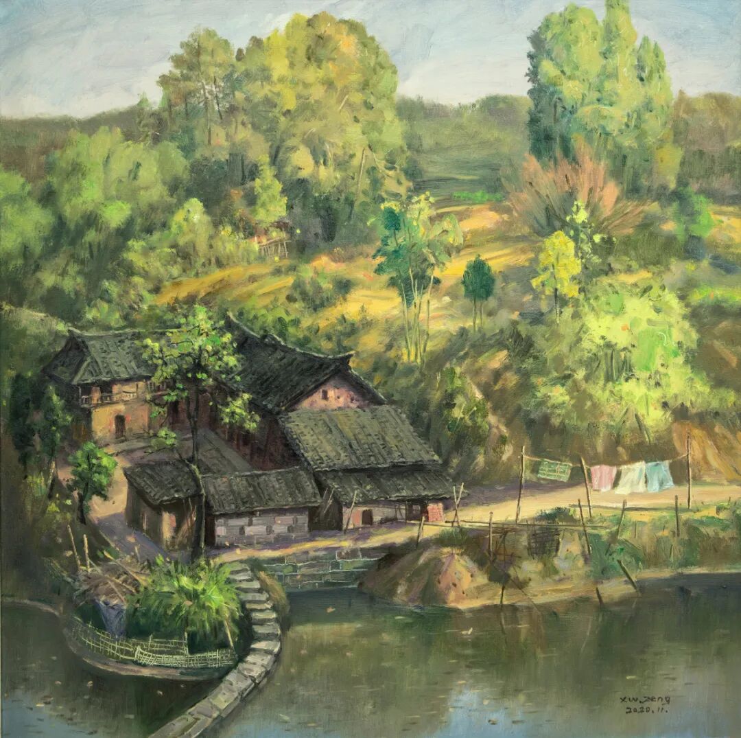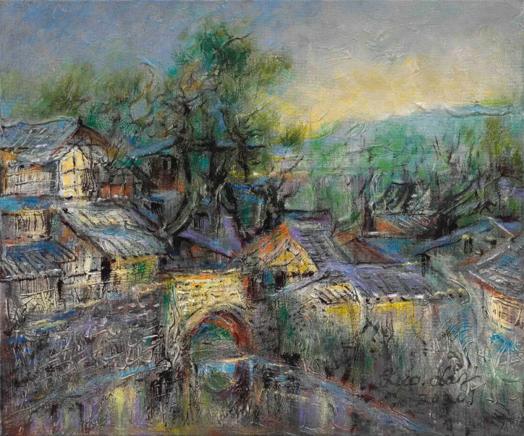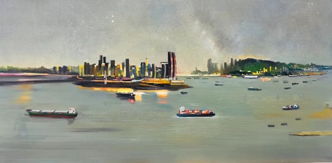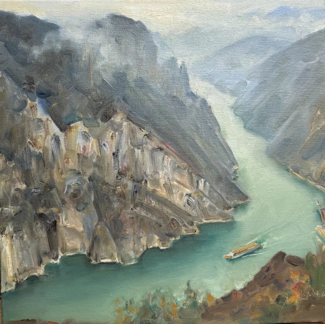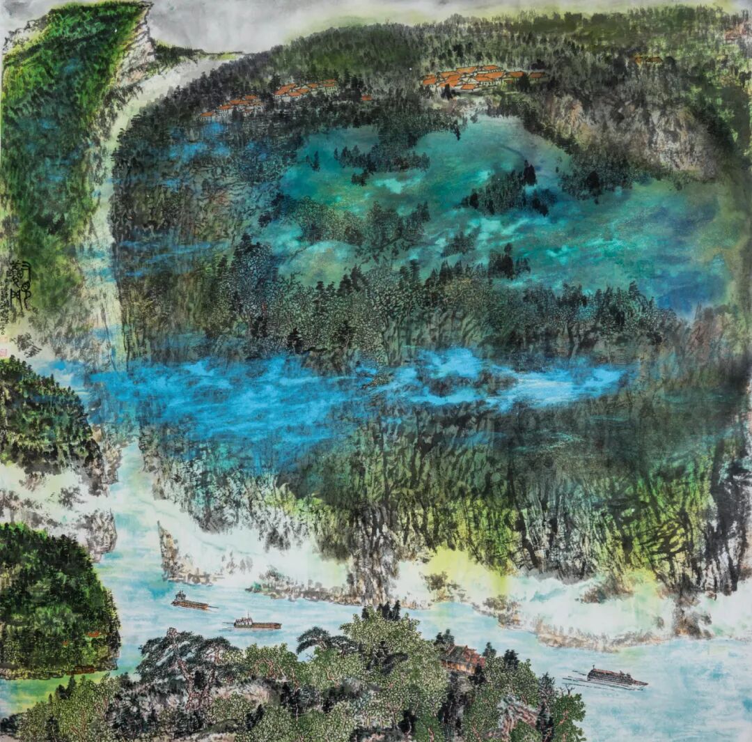 彭洪兵《多彩神舟之春润嘉陵江》油画