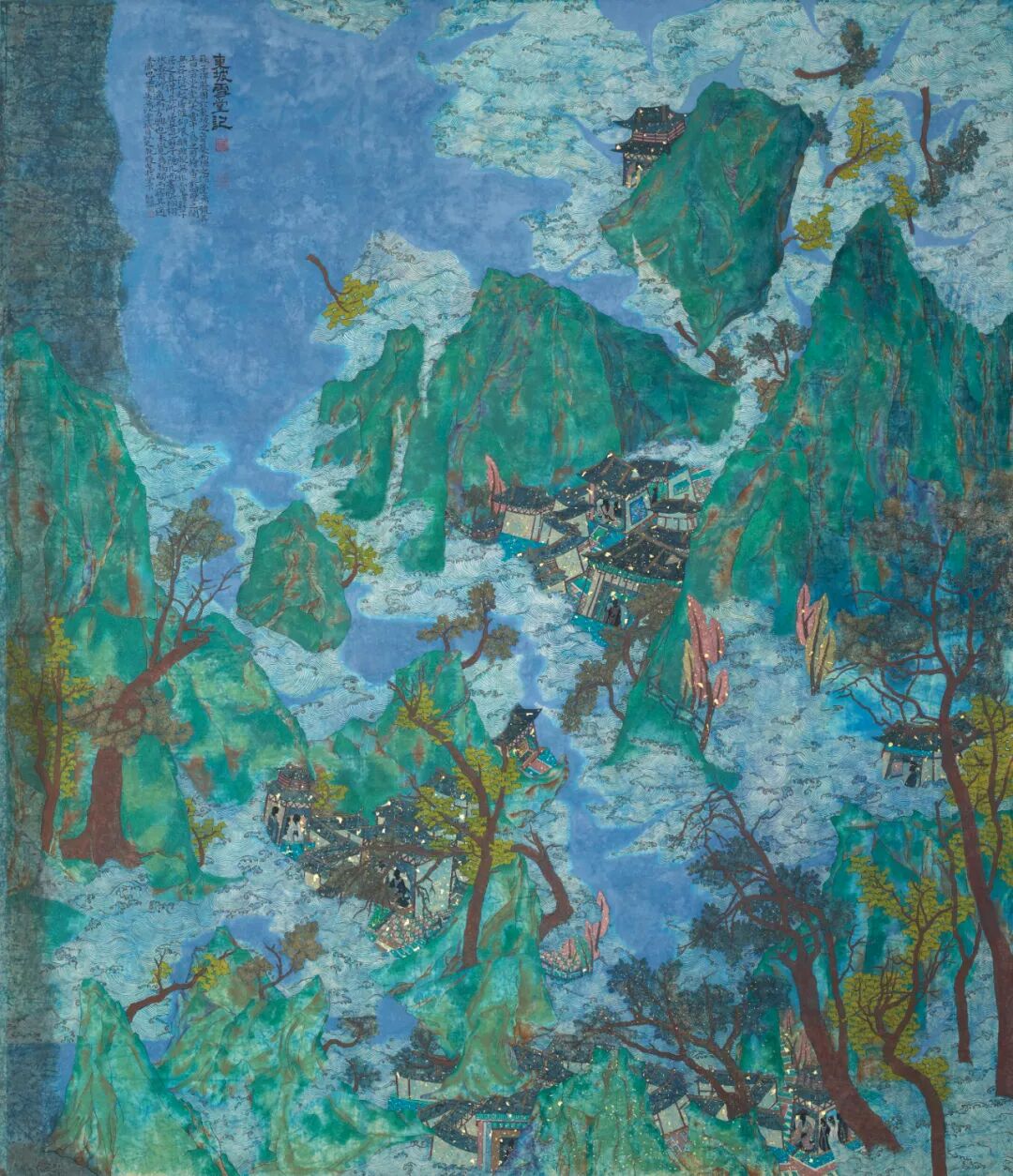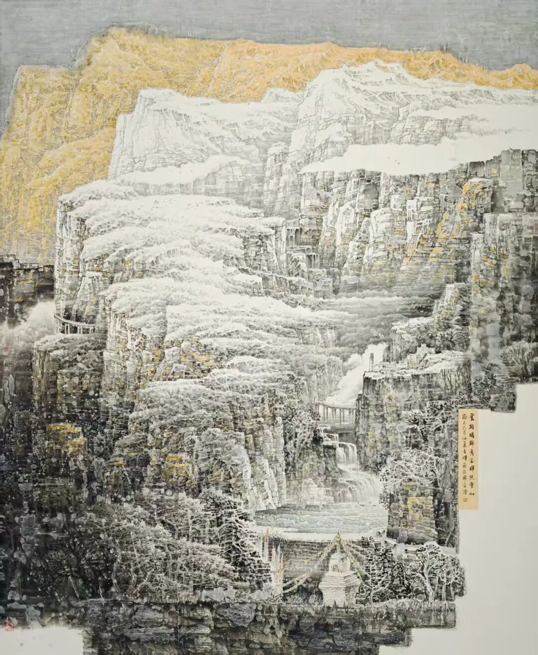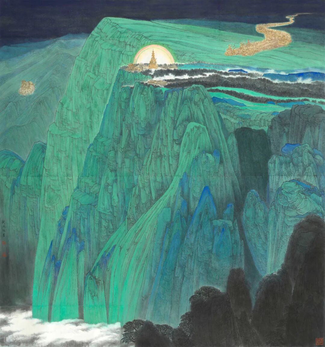 李晖《云路蟠锦秀 金辉照雪山》 中国画