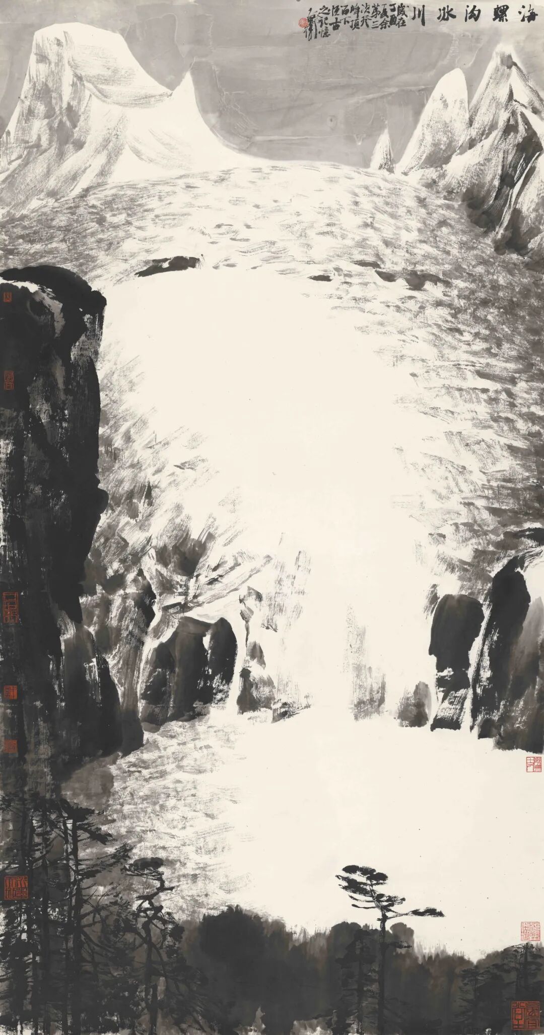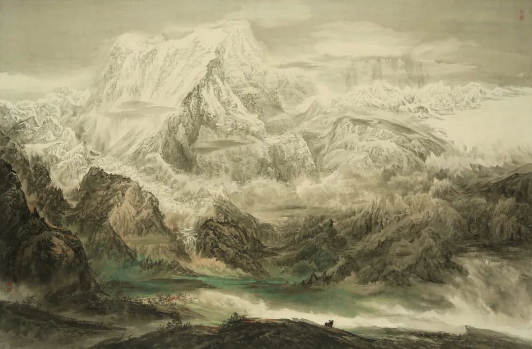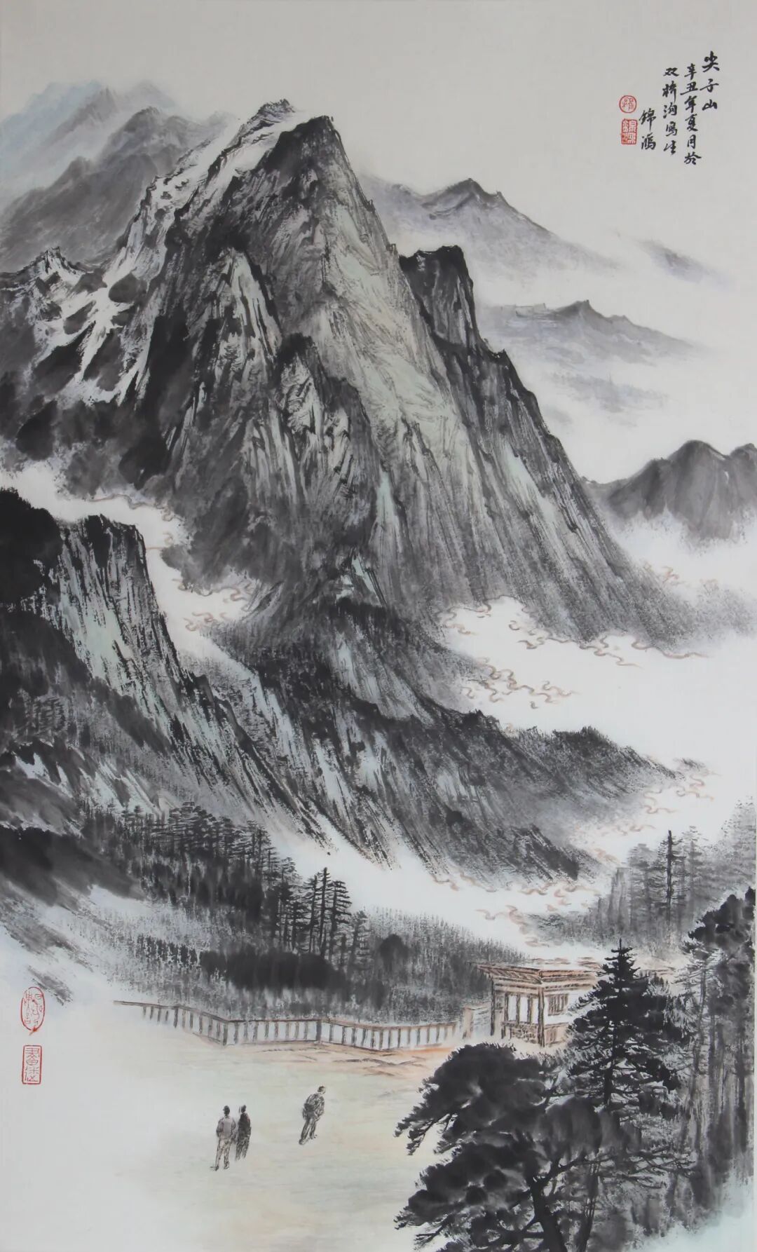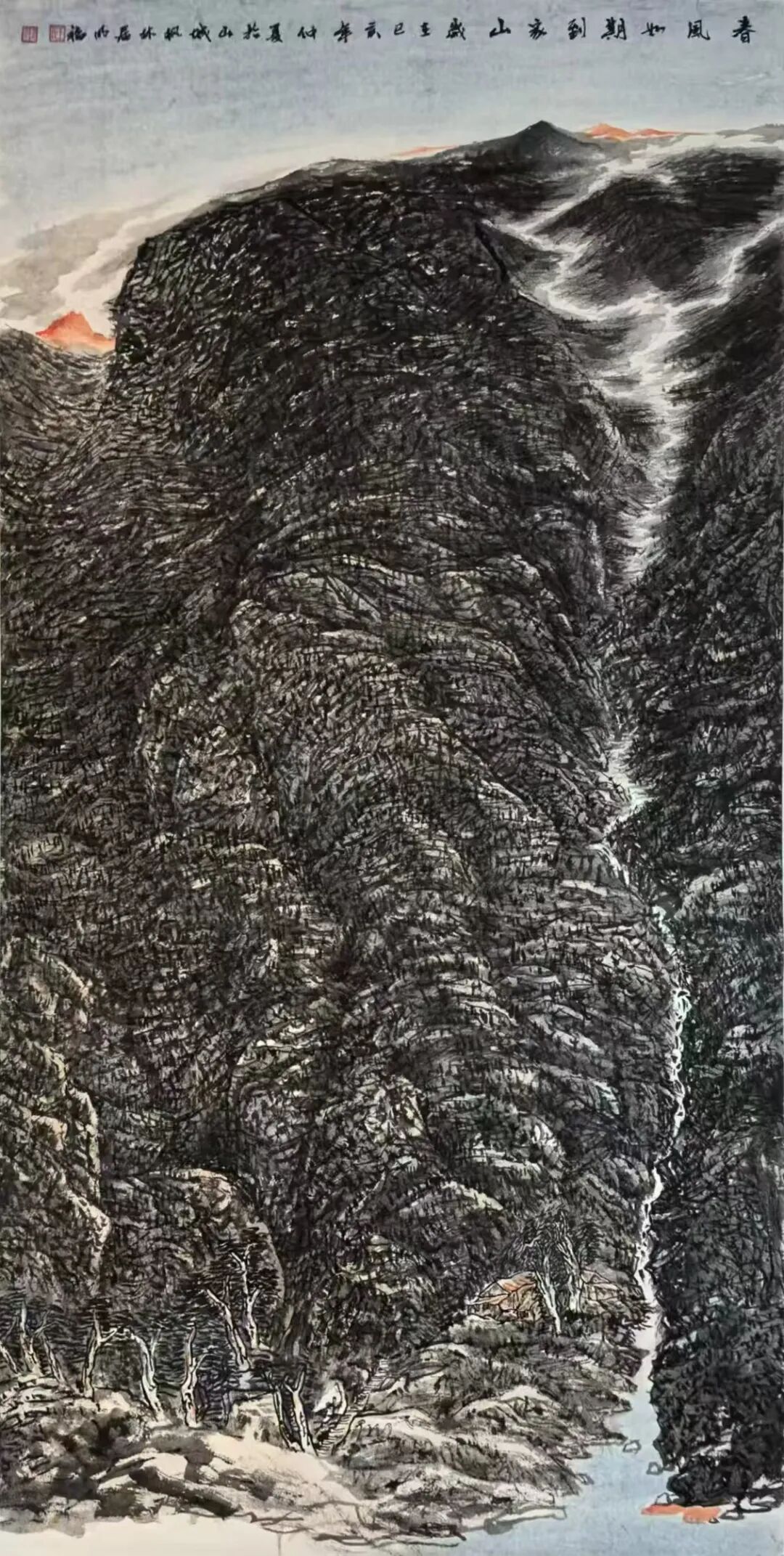 李晖《云路蟠锦秀 金辉照雪山》 中国画