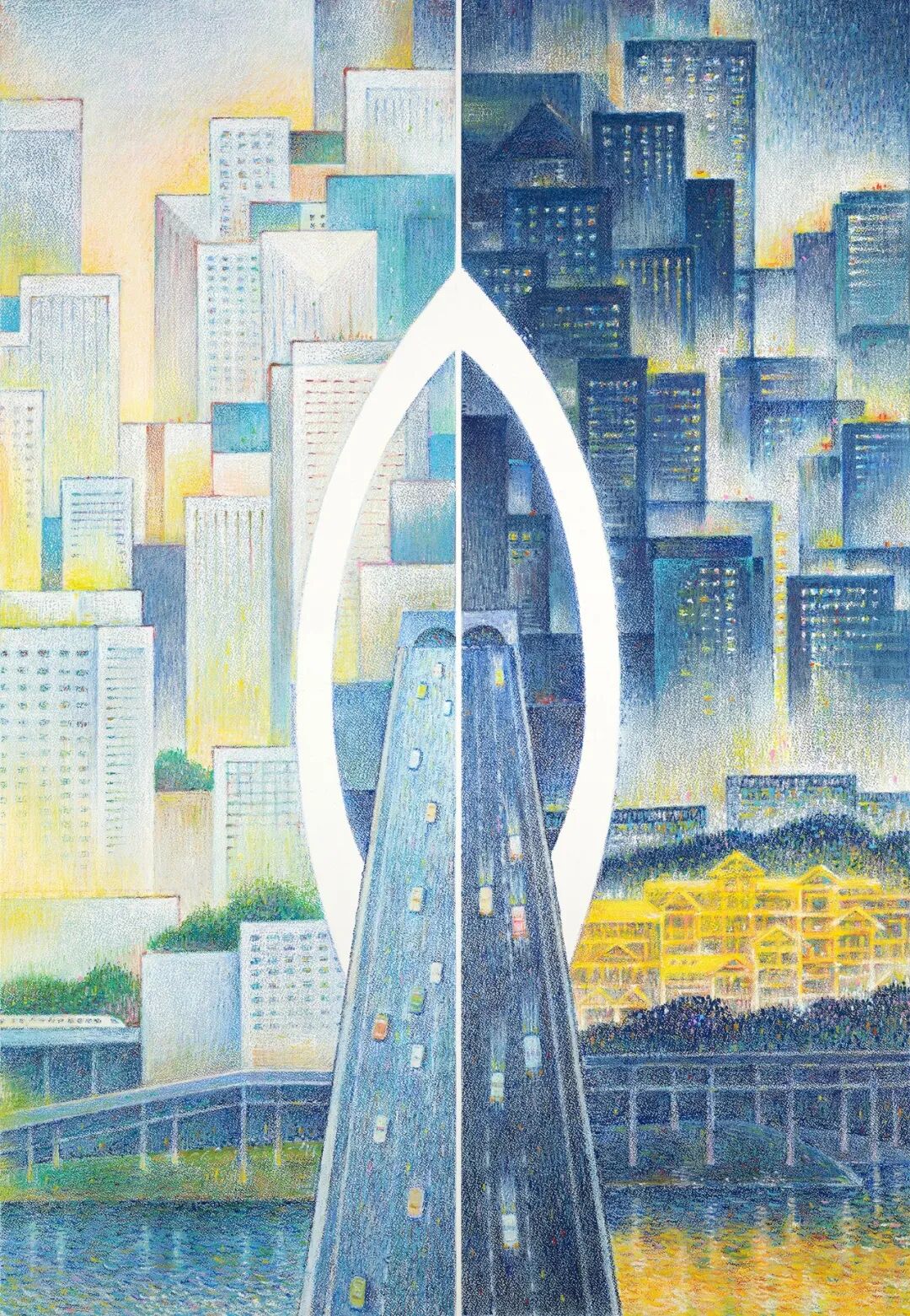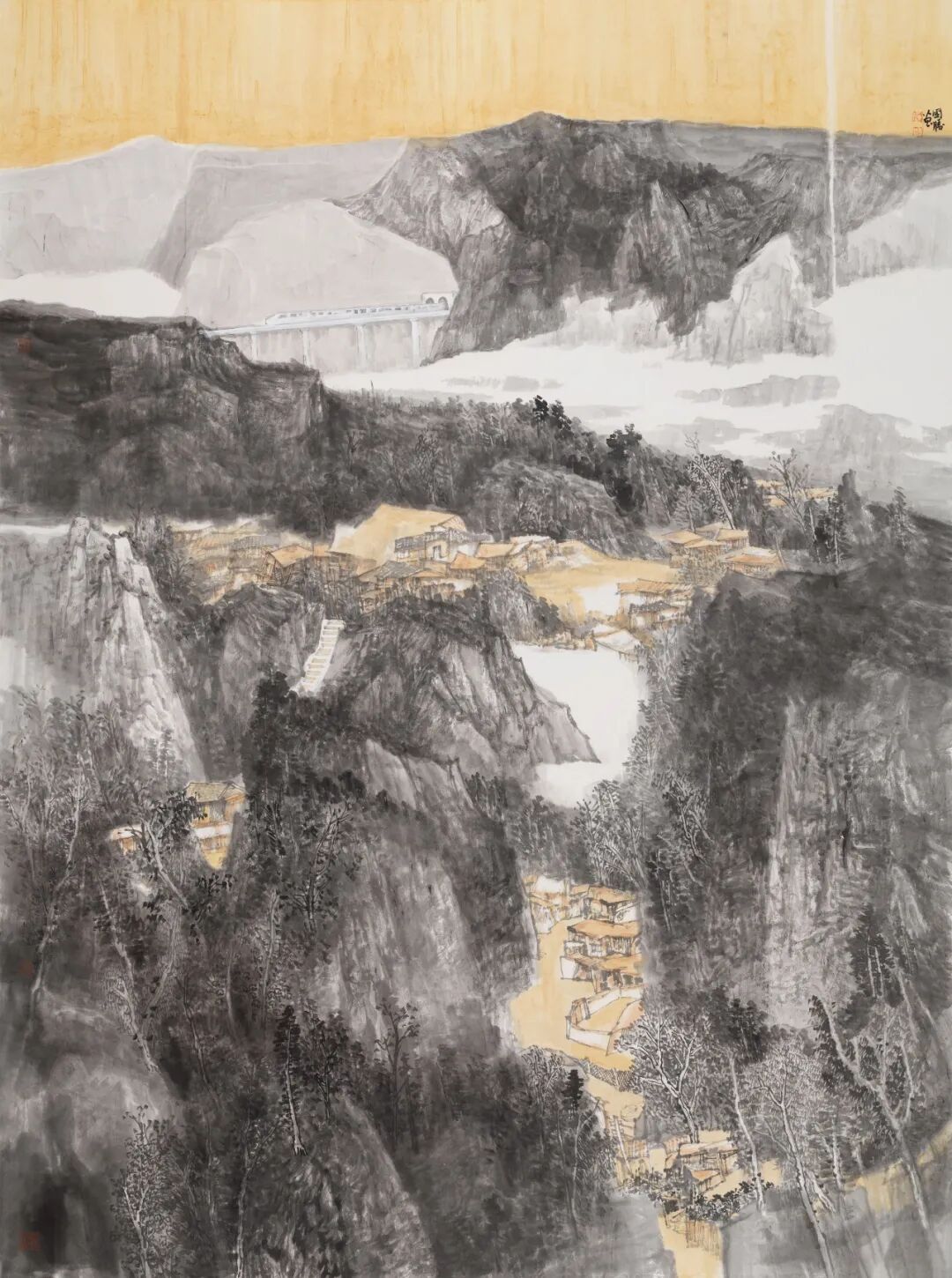 2023年:泼墨——笔锋书写巨变华章。第二届展览恰逢成渝地区双城经济圈建设三周年,策展团队邀川渝两地100多位艺术家共绘川渝新境。作品中,摩天大楼的霓虹与智能工厂的机械臂同框,层出叠见的立体交通奇观与青瓷釉色的千年荣昌窑火辉映,将城市景观用诗意诠释。
