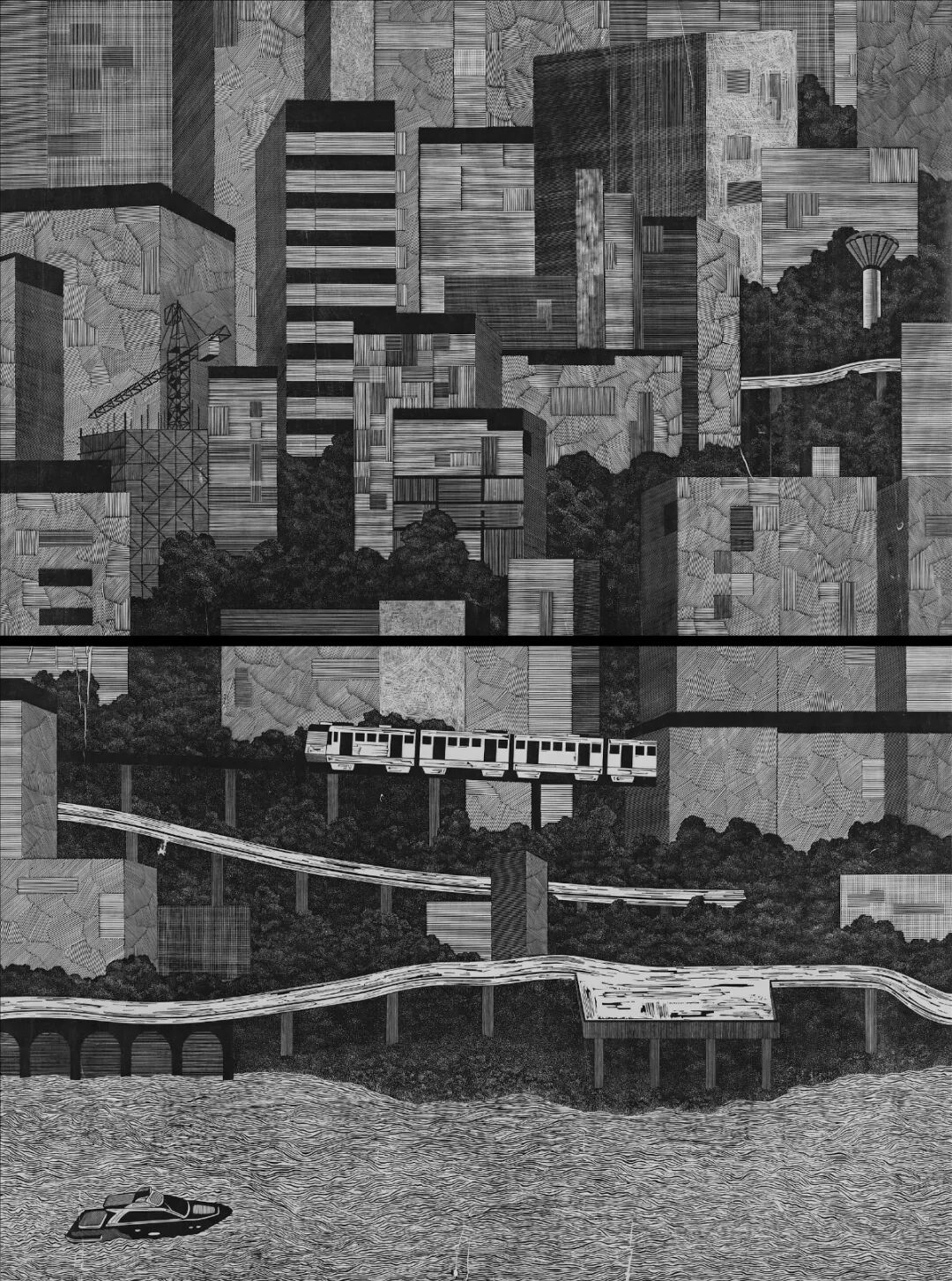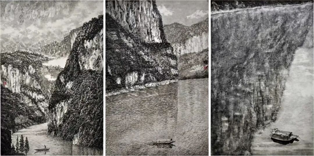 臧亮《山·水·人·城A- Ⅱ Ⅲ》版画