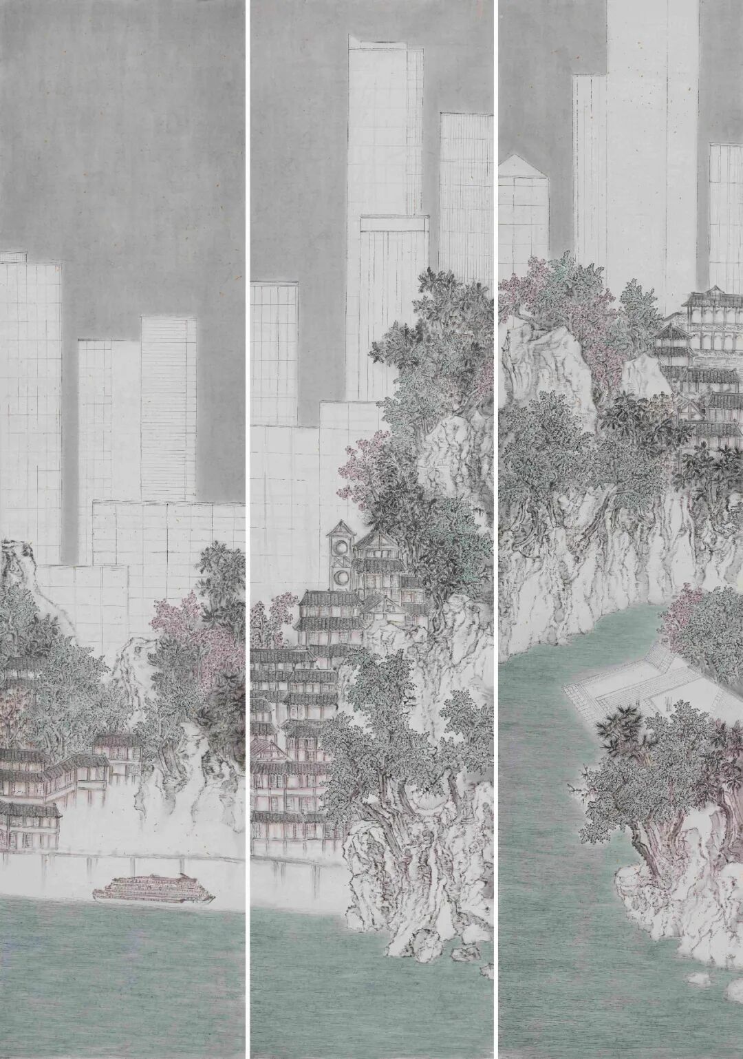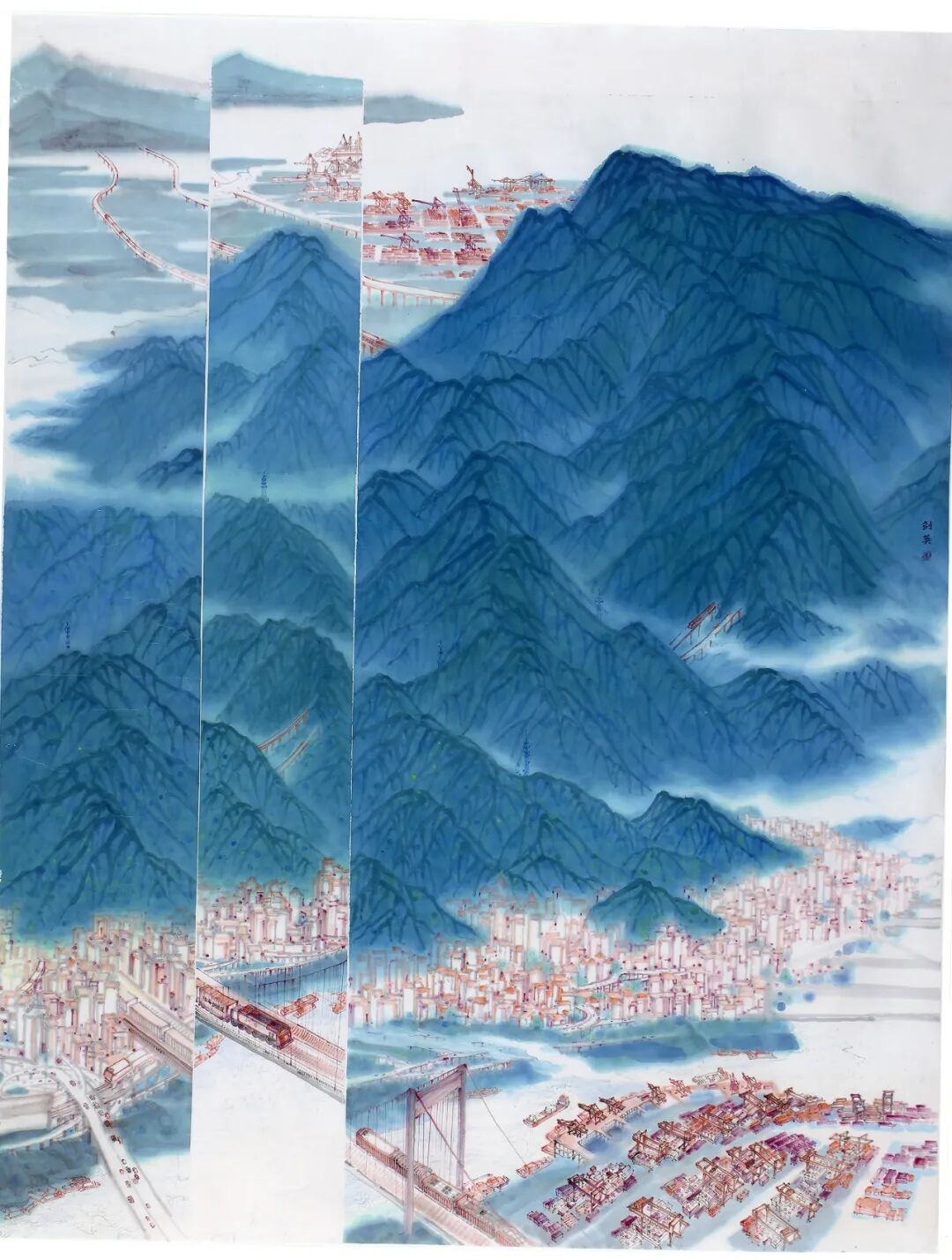 彭石、肖玉兰、萧家渝《早安—重庆》中国画