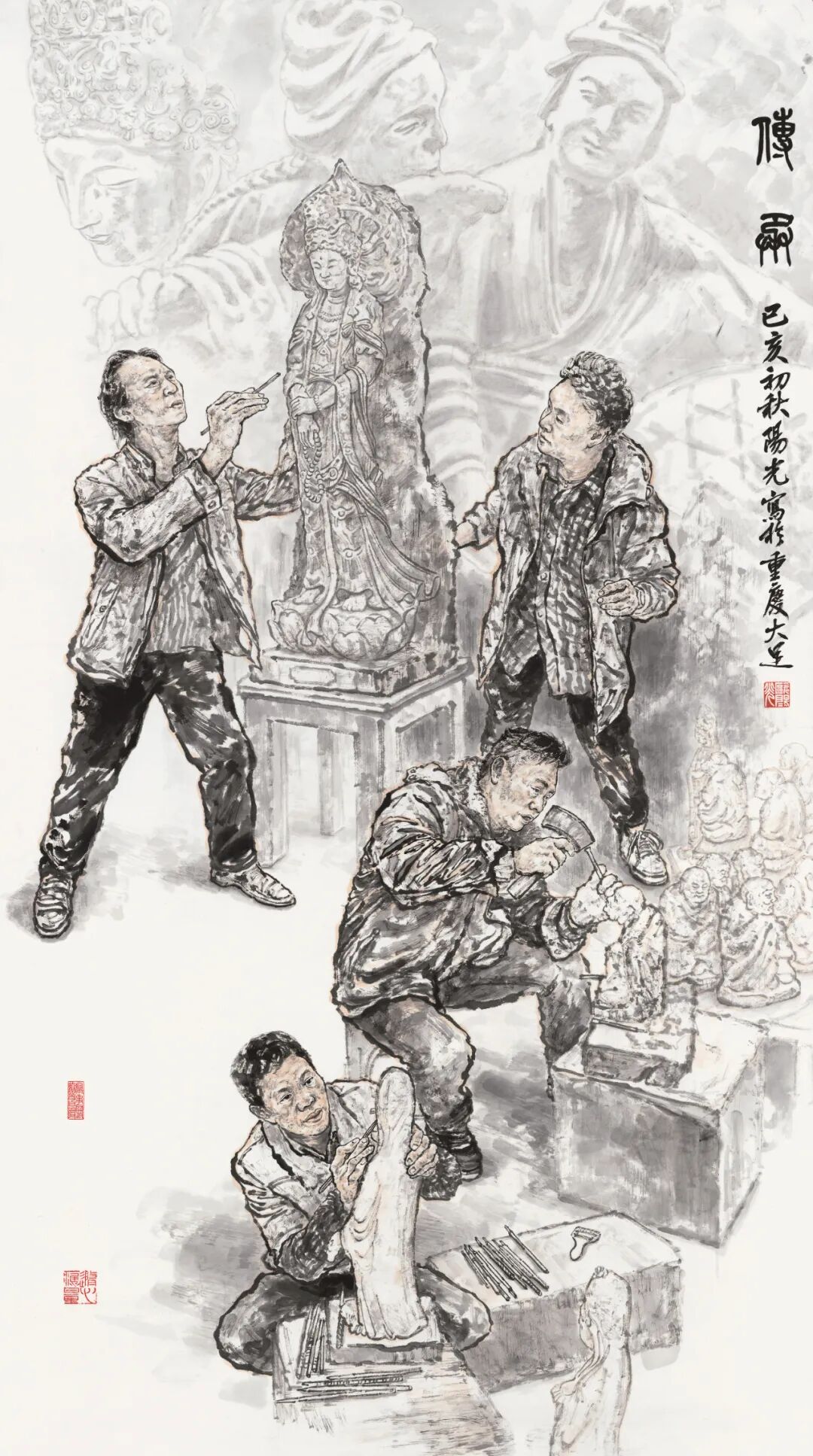 2022年:开卷——以艺术叩响时代之门。首届“多彩巴蜀”200件作品在重庆美术馆展出,以蜀绣般的细腻笔触勾勒火锅巷陌,泼墨的江水奔涌出两江交汇的壮阔。在展览中,洞见巴蜀不仅是山水,更是流动的文明史诗。