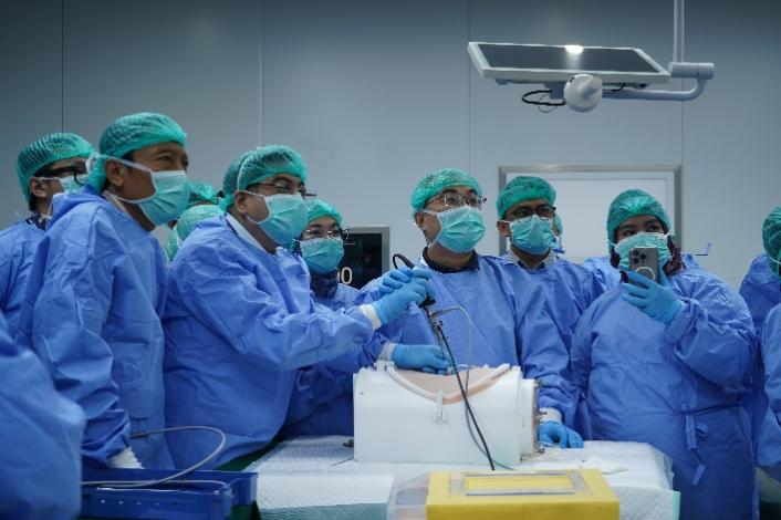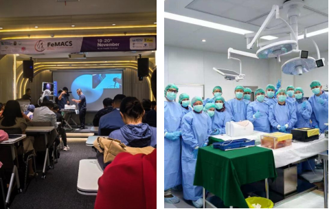次日举办的胎儿医学实操工作坊(workshop)吸引了当地及周边国家50名同仁参加。陈功立重点演示了胎儿镜激光手术(FLP)、射频消融(RFA)及胎儿镜气管阻塞术(FETO)等核心术式,通过模拟操作与分组带教,提升参会医师对宫内治疗技术的理解与操作能力。