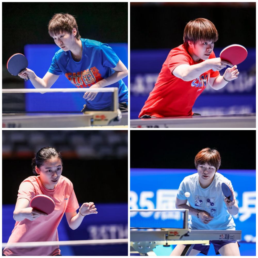 女队派出:孙颖莎、王曼昱、蒯曼、