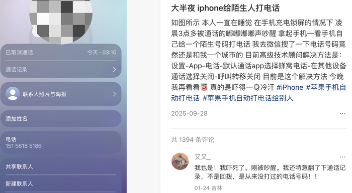 2月25日,“凌晨2点iPhone自动拨电话”话题登上微博热搜,引发广泛讨论。部分用户反映,在锁屏及充电状态下,设备会在凌晨时段自动拨出电话,拨号对象多来自通讯录联系人或近期通话记录。