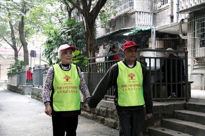 老两口担负的是郭家沱正街57号楼的巡查守楼任务。每天早上6点到下午6点,他们坚守在自己的岗位上。