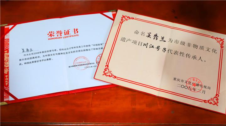 提到2008年奥运会,吴秀兰从柜子里拿出一个包裹严实的布口袋,里面是奥运会展演场馆的出入证,以及一张第29届奥委会授予的荣誉证书,赞扬她对中国文化与奥林匹克文化的交流作出积极贡献。