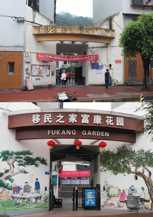 1999年,富康花园建成入住,属于直管公房,共有房屋6栋,居民357户。作为移民重点安置小区,小区以“富足、康乐”命名,寄托了一代人对新生活的期盼。