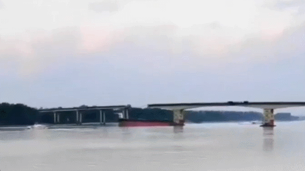 广州一座大桥被船只撞断,有一辆巴士掉落!车上只有驾驶员一人,暂无法联系
