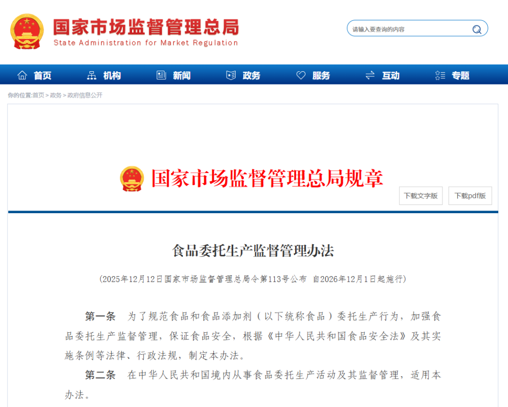 《食品委托生产监督管理办法》发布