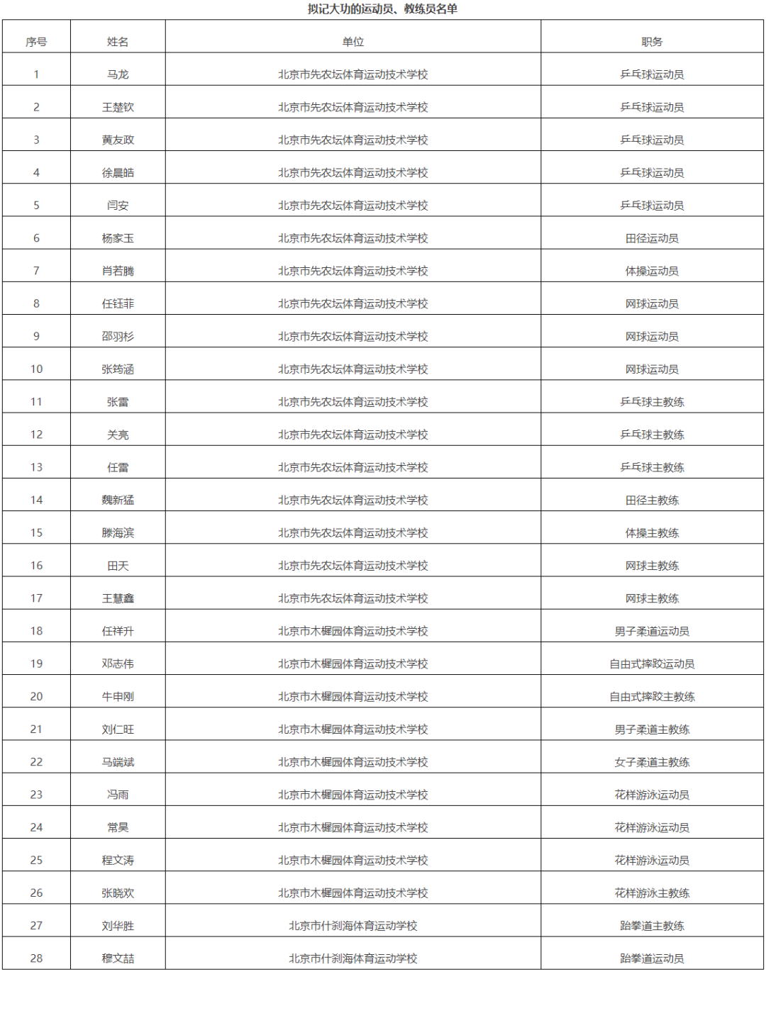 根据奖励工作部署,在有关单位积极推荐的基础上,经综合评审、统筹考虑,确定北京乒乓球运动队等9个集体,马龙等28位同志拟记大功对象。