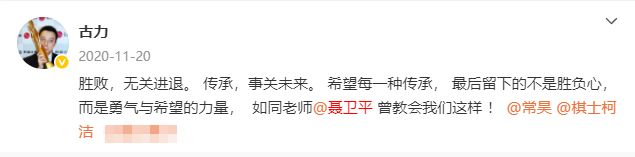 古力也曾在社交平台分享老师的教诲。