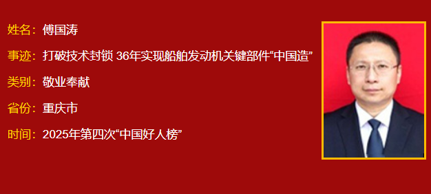 傅国涛(永川区):打破技术封锁 36年实现船舶发动机关键部件“中国造”
