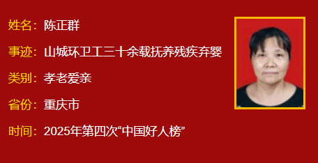 陈正群(渝中区):山城环卫工三十余载抚养残疾弃婴