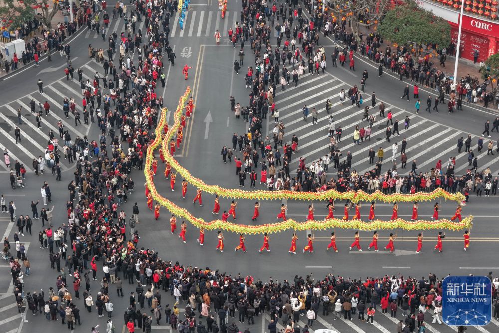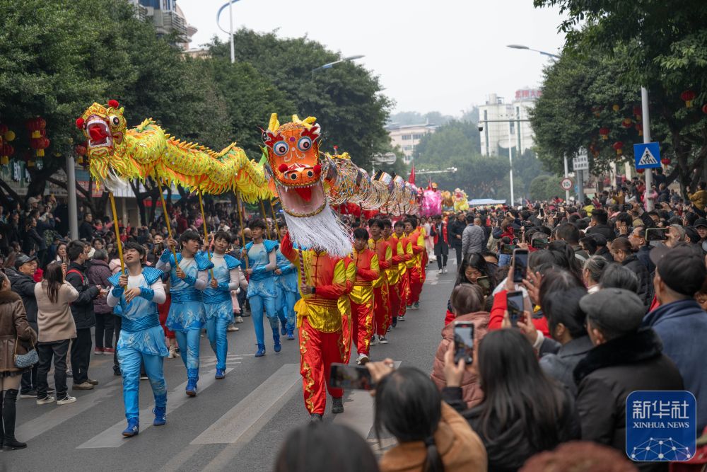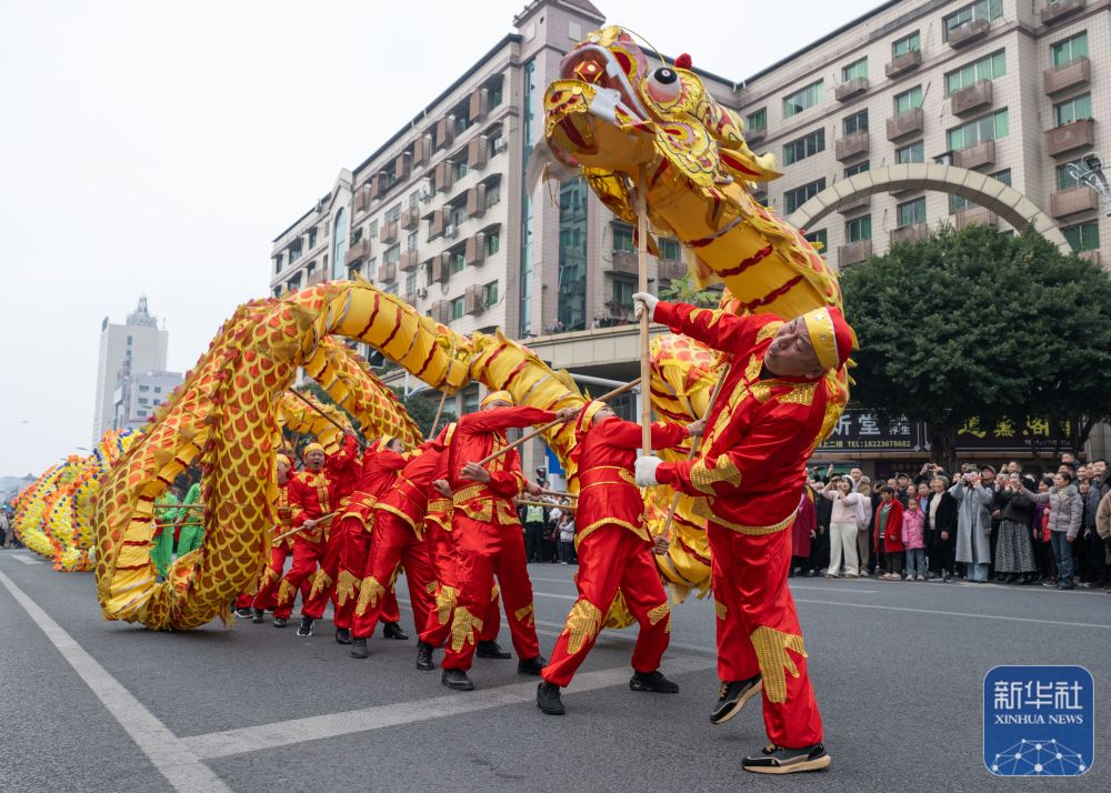 2月17日,重庆市铜梁区启动龙舞春节大巡游活动。来自全国60余支龙舞队伍同台献艺,为市民带来精彩文化盛宴。