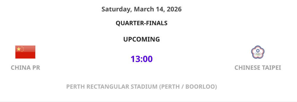 中国台北队和印度队的比赛在悉尼进行。第12分钟,中国台北队抓住印度队后卫失误的机会,由苏育萱打空门得分。第39分钟,印度队卡利安禁区外直接任意球击中横梁下沿反弹入网,将比分扳平。上半场补时阶段,印度队球员在禁区内手球犯规,中国台北队获得点球机会,许翊筠主罚的点球击中门柱后弹出,被印度队门将挡入球门,中国台北队2:1领先。
