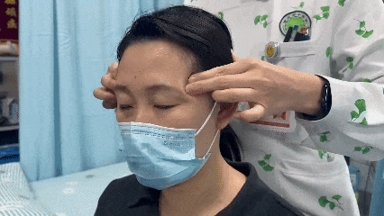 运太阳:用中指和食指指端在双侧太阳穴做环形揉按,顺时针为补法,逆时针为泻法。
