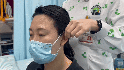 拉耳垂: 拿住耳垂向下牵拉,直至耳垂温热微红。
