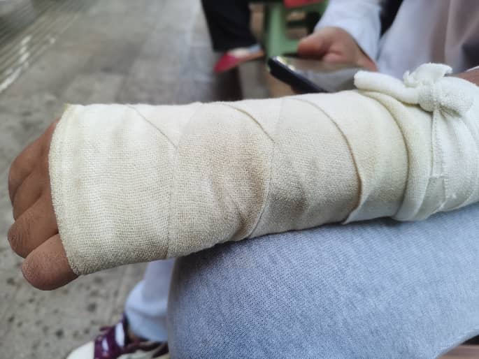 自己手腕摔成骨折