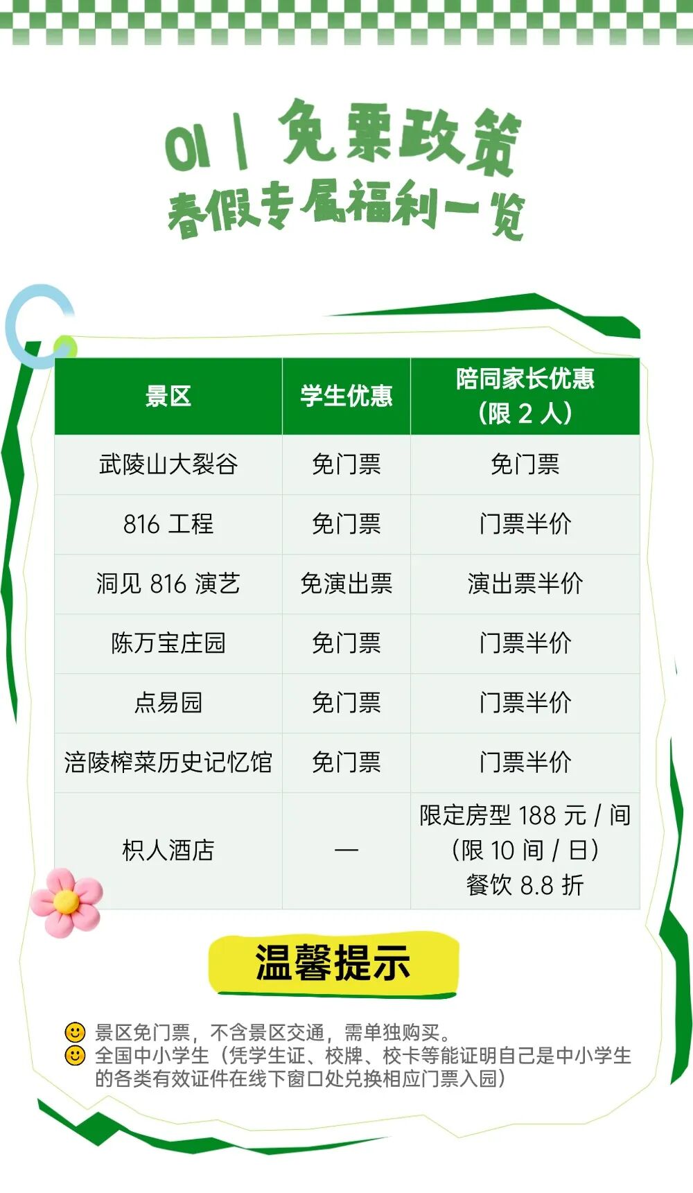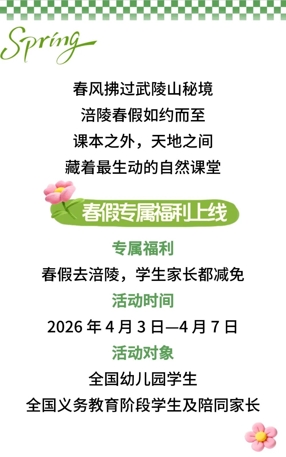 清明春假 渝你同行丨学生、家长齐减免!跟随涪陵春假专属福利畅享春日美景