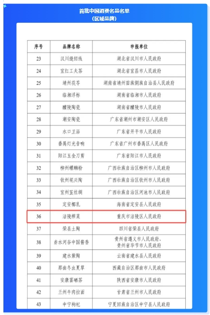 百年匠心铸就民族味道 涪陵榨菜入选首批“中国消费名品”