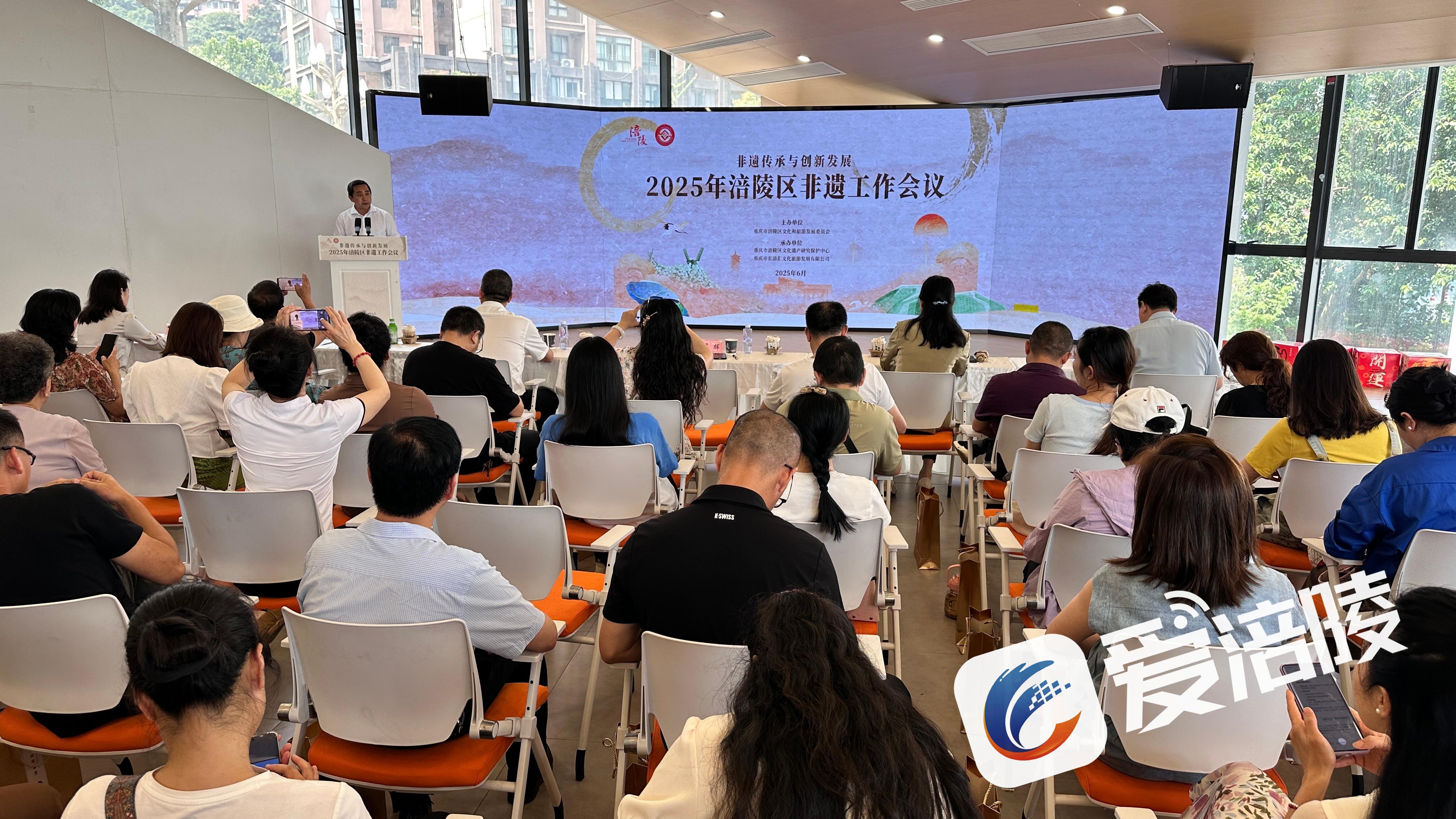 在2025年涪陵区非遗工作会上,与会人员观看了涪陵非遗工作20年专题片,会议对全区非遗保护传承工作作出系统部署。国家级非遗代表性传承人万绍碧等现场交流经验。会议同步公布了涪陵区第一批非物质文化遗产生产性保护示范基地名单,并正式授牌第六批区级非物质文化遗产代表性项目,为本土非遗传承注入新动能。