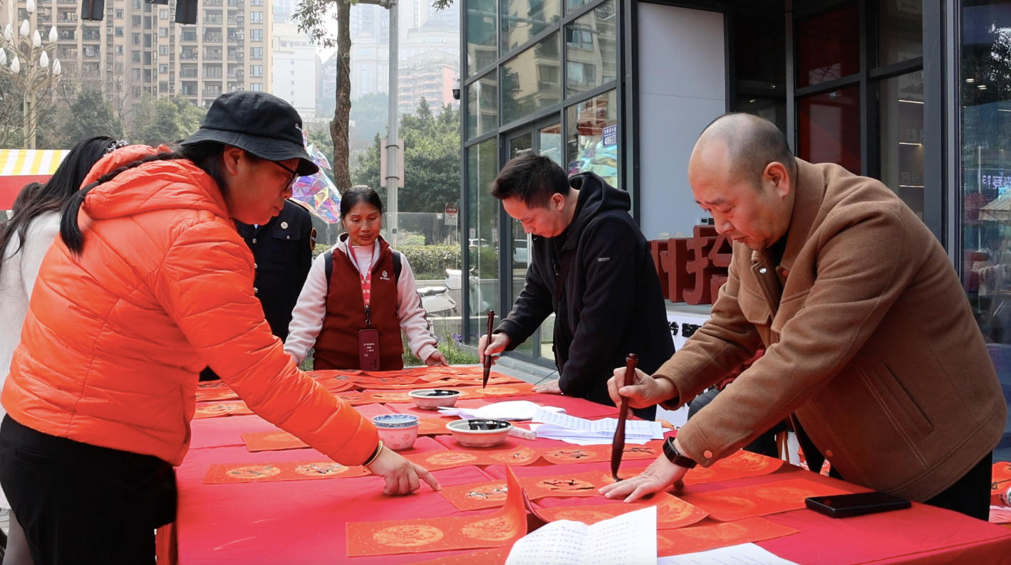 2月11日,“非遗贺新春·寻味中国年”2026涪陵区非遗贺新春系列活动在长涪汇涪州拾遗·涪陵区非遗展销中心及山水广场热闹开启。“马上来”新春文化系列展览、《文化记忆谱芳华》区图书馆馆藏家谱展、涪州传拓制作技艺体验、书法家现场书写春联并赠送、涪陵非遗主题展览等多项新春传统文化体验活动轮番登场,受到市民热捧。