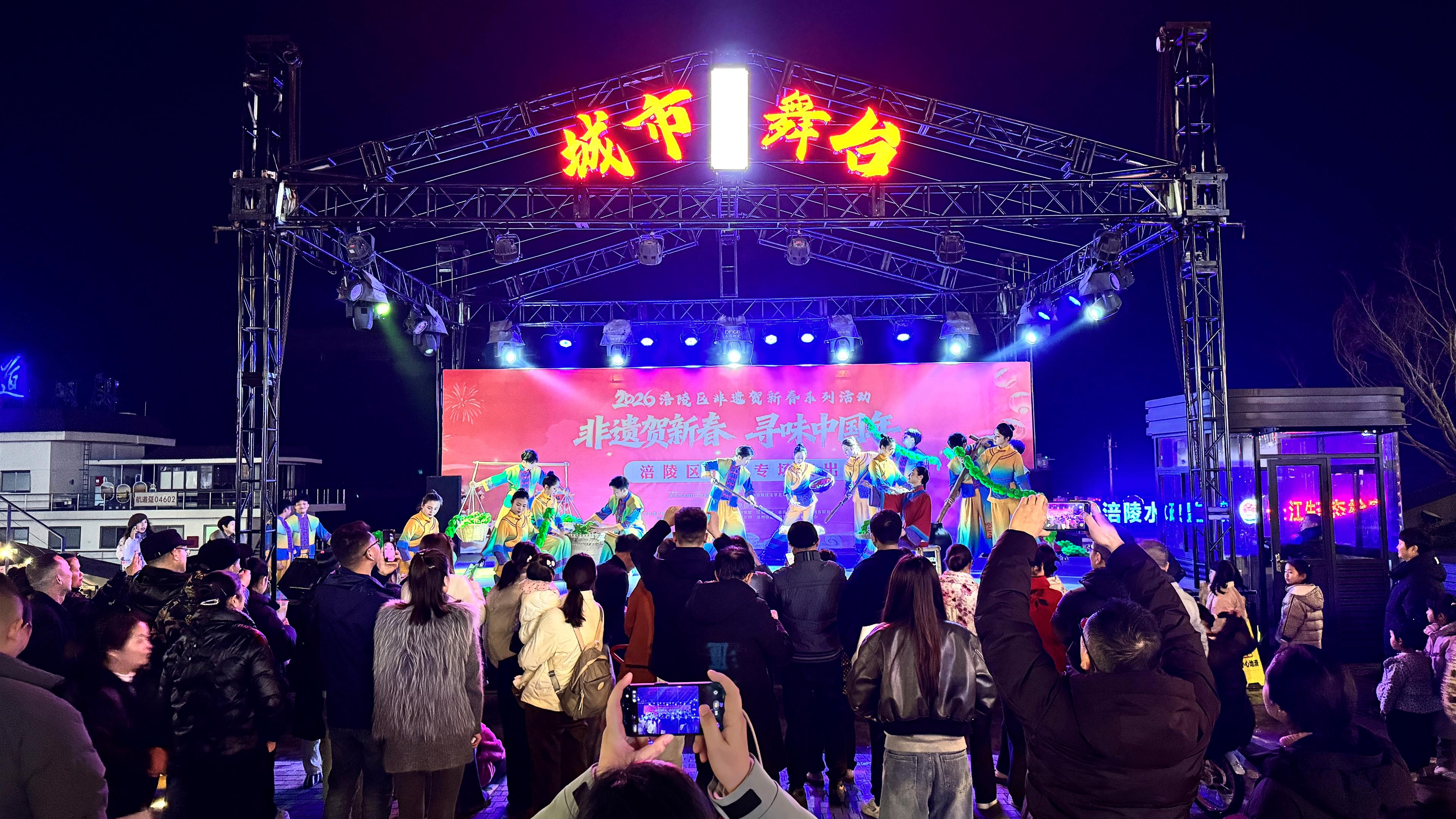 为弘扬中华优秀传统文化,营造喜庆祥和的春节氛围,2月11日晚,涪陵区非遗展销中心山水广场灯火璀璨,“非遗新春专场演出”在此上演。